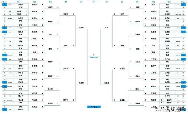 女单1号种子孙颖莎(河北队)、女单2号种子王曼昱(黑龙江队)、女单4号种子陈梦(山东队)、朱雨玲(澳门队)